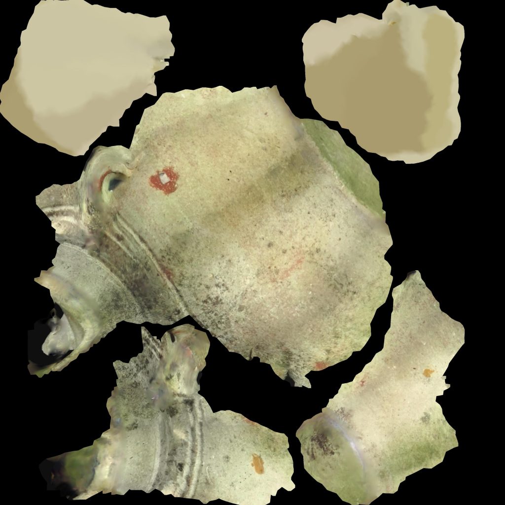 The textures actually look quite good and don’t have the fuzziness of the HP 3D Scan Pro 5 software’s texture output. It’s also UV-mapped for maximum efficiency. The texture below was originally 3172 x 3172 pixels. Still no power-of-two resolution but at least it’s square.