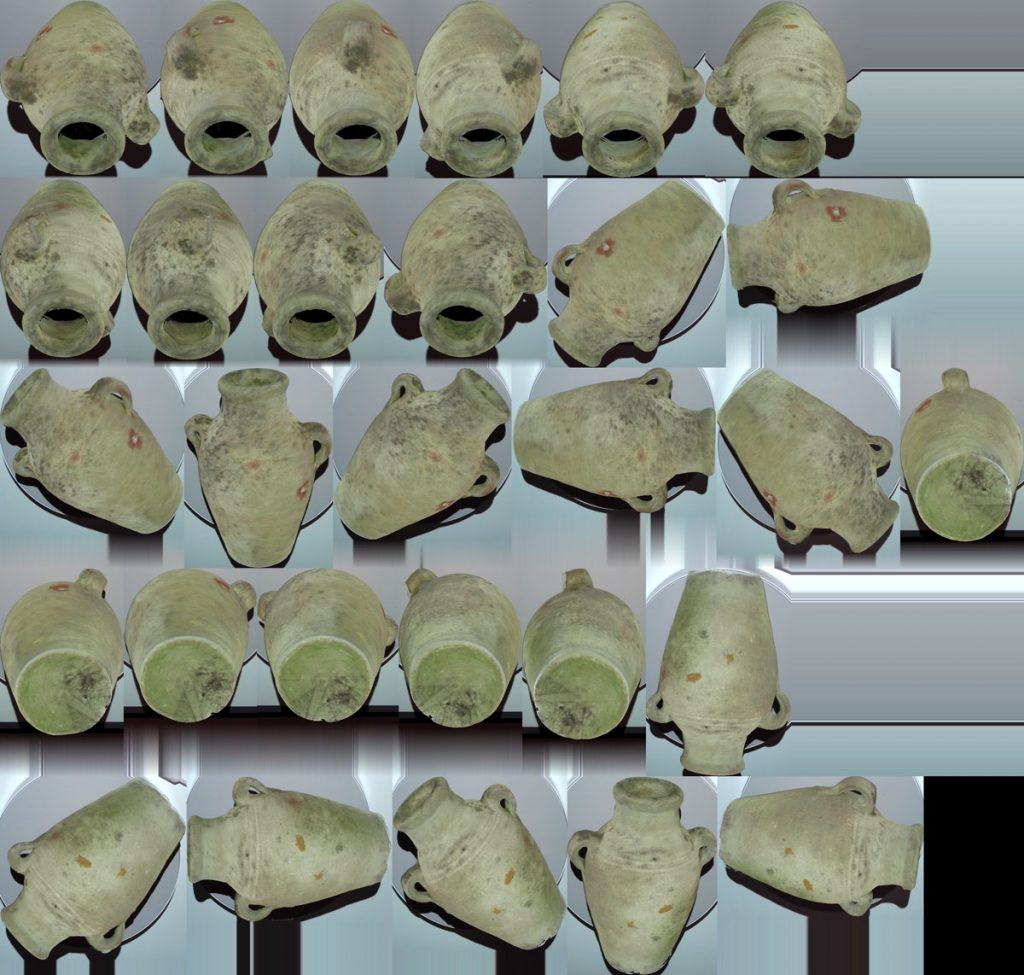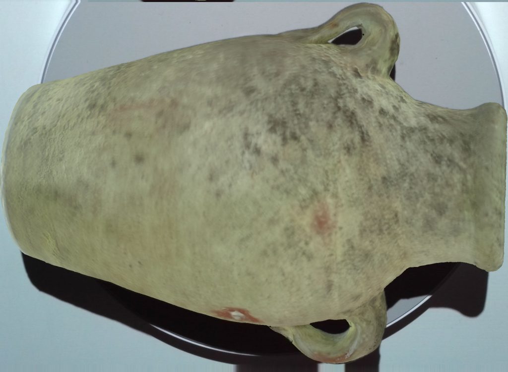 Let’s start with the 19 cm tall Old Jar I used in the photos above, made from 3 cycles (front, back, top) of 8 scans each and processed with the resolution set at 1000. This produced an OBJ file of 380MB, which is already quite big for most purposes in my opinion.