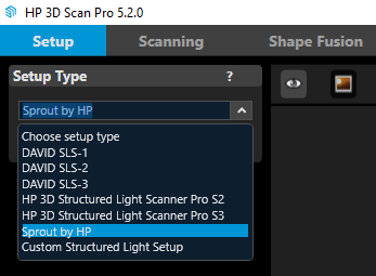 Setting up the software for the Sprout G2 is a lot simpler than for the SLS-3 or other supported desktop scanners. This is mainly because all you need to do is select the preset.