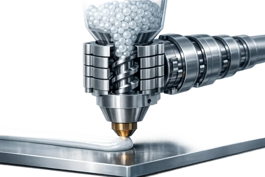 Limitations of pellet extrusion are primarily linked to bead scale, melt control, and process dynamics. Large nozzle diameters (including the 8–20 mm class published for one industrial extruder line) constrain minimum wall thickness, corner fidelity, and text/feature reproduction, and they typically require subsequent machining or design concessions for assemblies. [8] Even in smaller pellet systems, stated layer-height bands in the ~0.5–2.5 mm or ~0.75–2.25 mm range indicate that surface finish will generally be coarser than typical 0.2 mm filament printing unless secondary finishing is applied. [9][11] For many commercial systems, dimensional accuracy, repeatability, and standardized mechanical properties are not published as single headline figures; when absent, “No reliable figure found” is preferable to extrapolation.