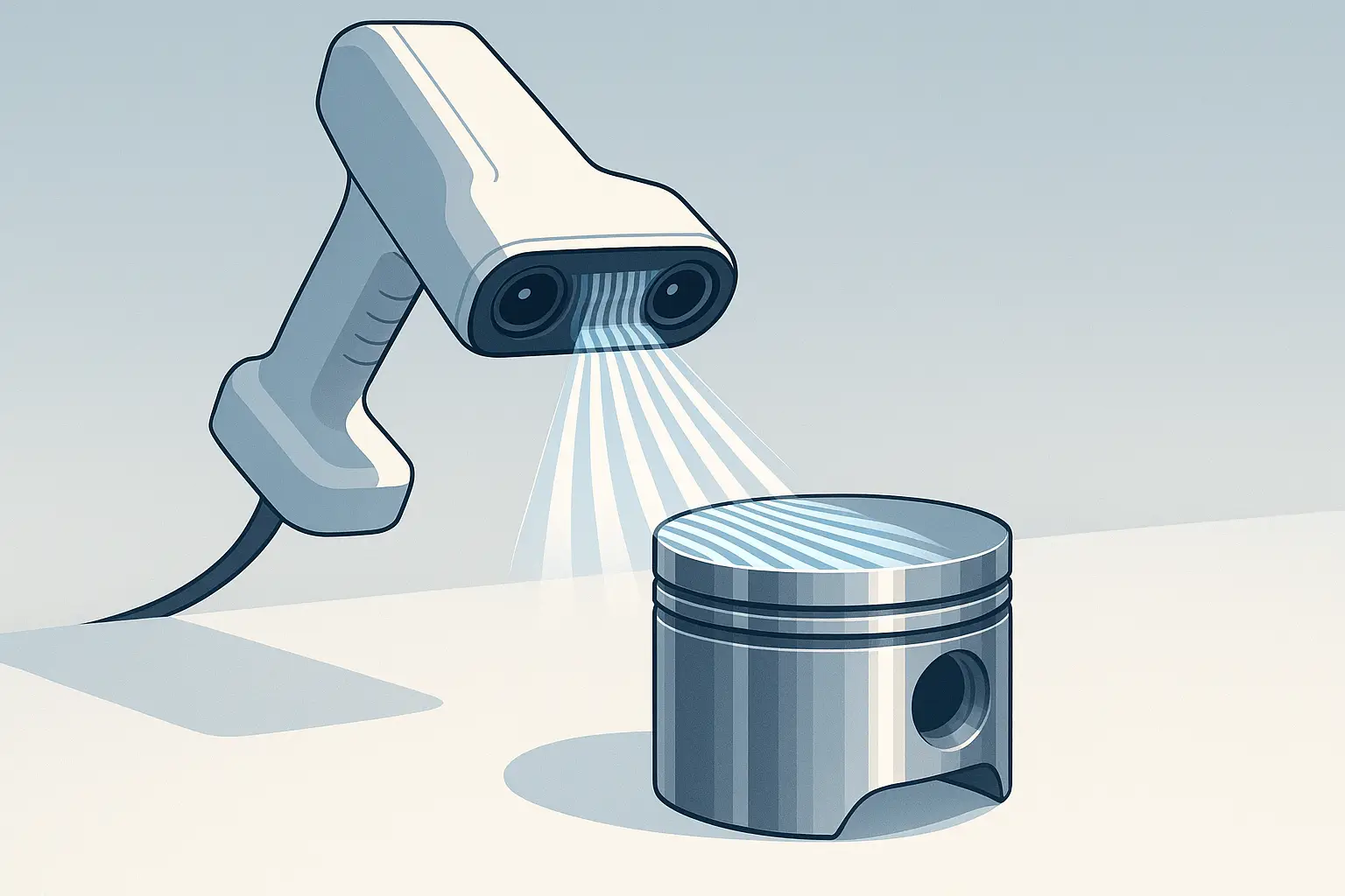 Structured‑light 3D scanners work by projecting specific light patterns — such as binary codes, Gray codes, or fringe patterns — onto an object’s surface. Cameras record the pattern’s distortion, allowing software to compute the surface’s 3D shape using triangulation techniques. [1]