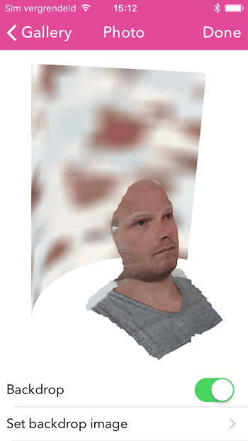 Because you can only move the laser over your face from the top downwards it’s really only a face scan. If you’re happy with the result all you do in the app is upload it to the dedicated BevelPix service. This means that you cannot export the 3D file straight from the app or generate a GIF to quickly share on social media. Which is ironic, since the heavy processing is done on the phone.