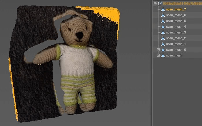 This result is relatively good. The laser captures quite some details from the knitting pattern (check the MatCap render mode) and the combination with the texture makes it look like Teddy for sure.
