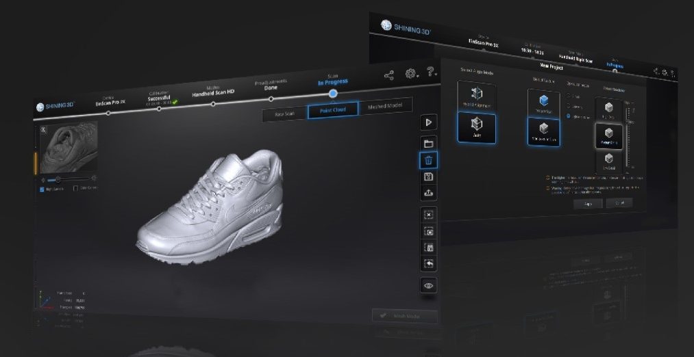 The 2X series come with a new kind of software, called ExScan Pro which features a completely redesigned user interface and promises faster scanning and more features. I’ve only seen the screenshots above but it looks like a big improvement over the existing EinScan software.
