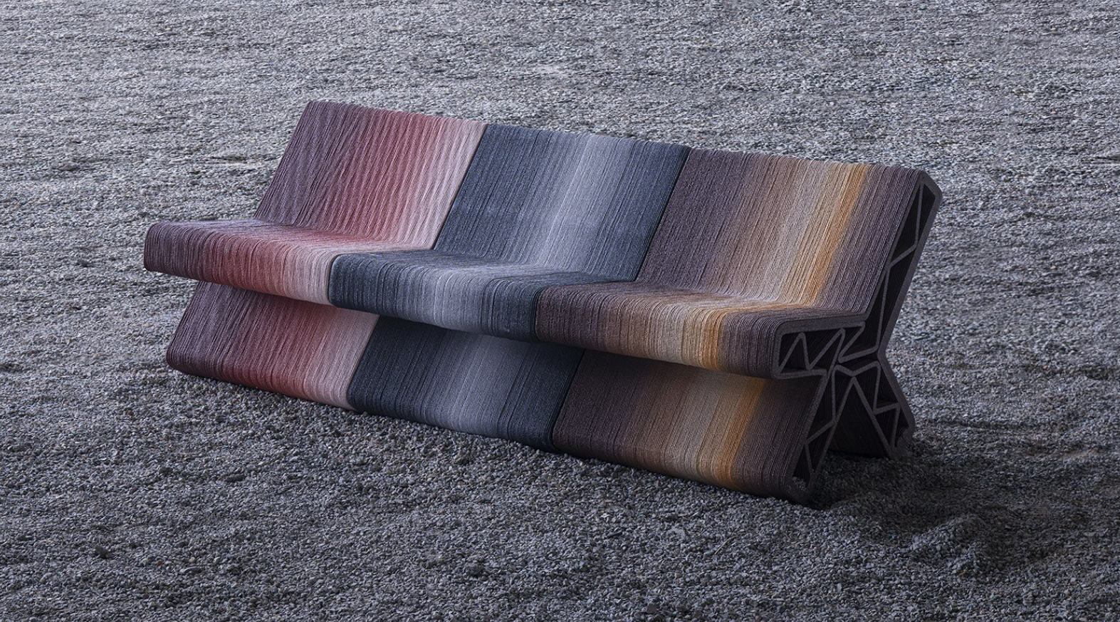 The project is an exploration of 3D printing’s expressive potential. Using a layer-by-layer deposition method similar to Fused Deposition Modeling, dual print heads distribute pigments to produce gradual color transitions. According to the team, these gradients are not decorative but emerge from the material itself. The unique tones are derived from brick, concrete, and ceramic fragments.