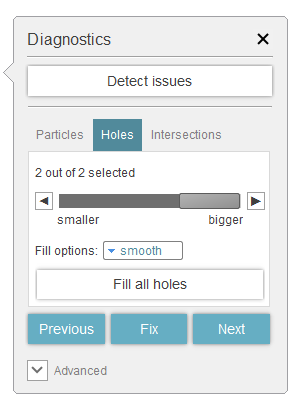 The fourth drawer has some analysis tools. The first icon will not only check and report if there are issues with your model, like holes and intersecting geometry, it can also fix them automatically. You even have some control of how that’s done and which holes are filled. Needless to say that running this tool is a must for 3D printing. But I think it’s good practice to do it for every purpose.