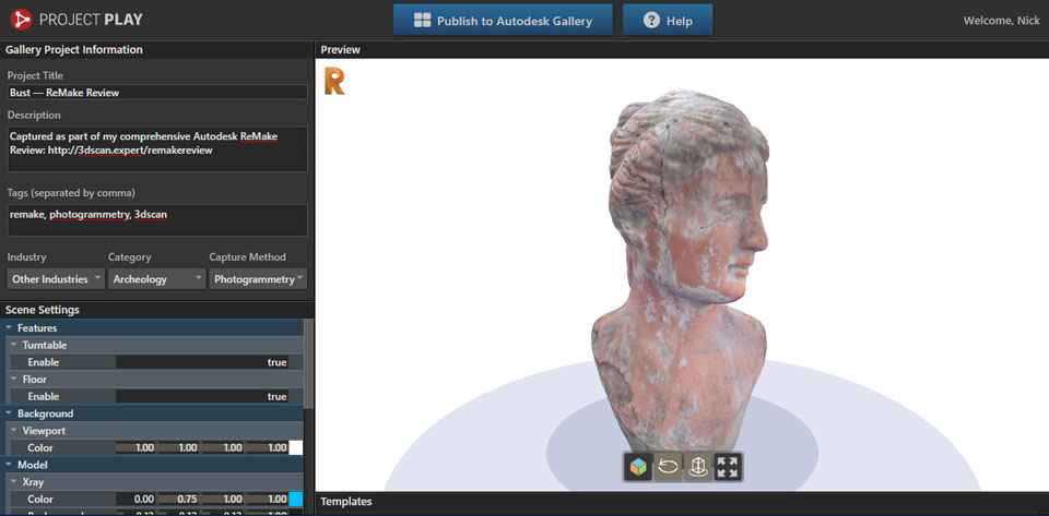 The examples in this post where all exported as .OBJ and embedded through Sketchfab. Unfortunately, you can’t export directly to this platform from ReMake. However, you can publish your models directly to Autodesk ReMake Gallery for easy sharing. This works through Autodesk’s new Project Play online viewing experience and the models can also be embedded.