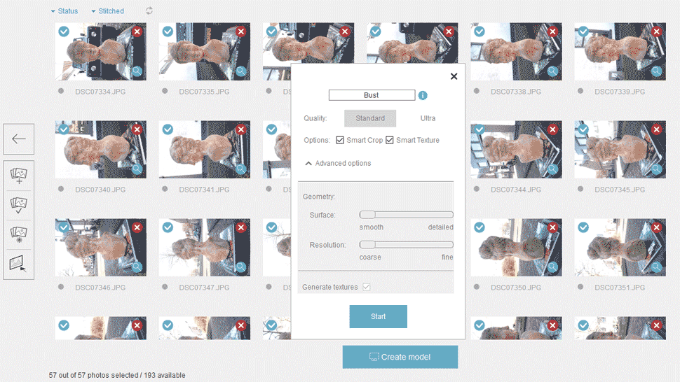 Apart from the Generate Texture checkbox, that’s all there is to set up. This is a big contrast with other photogrammetry software like AgiSoft PhotoScan (which I’ll review next) that let’s users enter all kinds of numeric parameters for the processing. With ReMake, Autodesk has clearly prioritized usability over control which makes this software very approachable for almost everyone. It all feels more like a creative tool than a technical one.