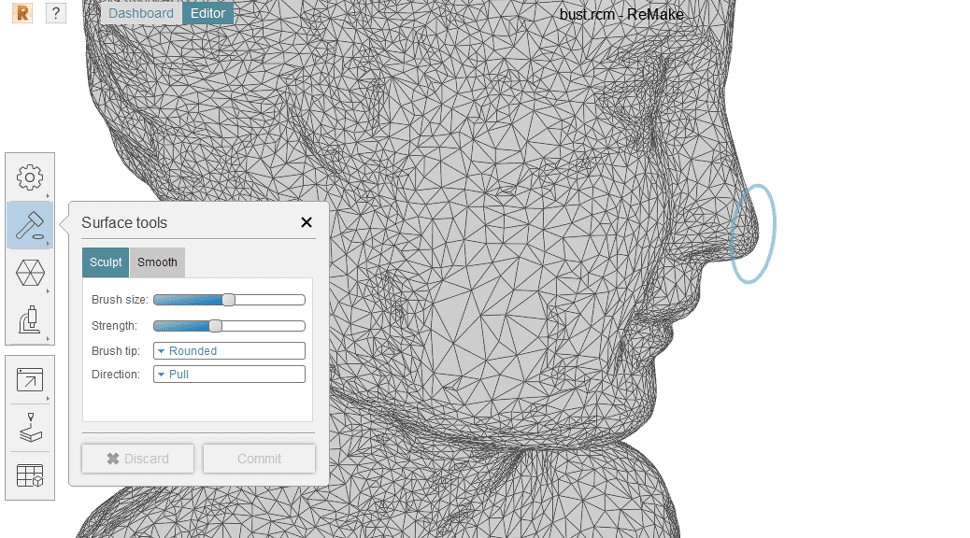 There are also features to (selectively) close holes and make bridges between selected polygons. This is handy for reconstructing holes in the mesh. And while it’s very basic, ReMake does also have a sculpt tool for retouching or smoothing geometry.