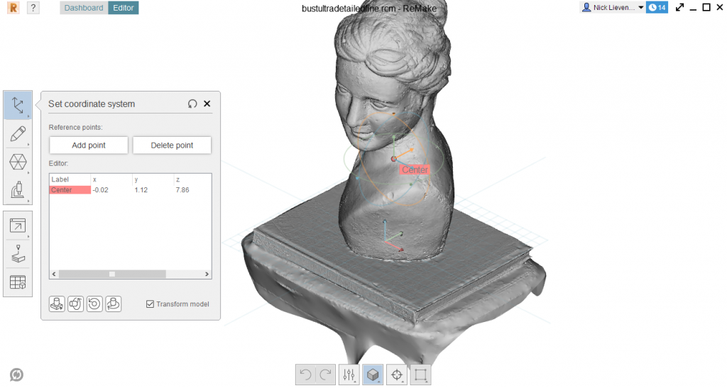 It’s also a good idea to position your object in relation to the floor grid using the Set coordinate system feature.