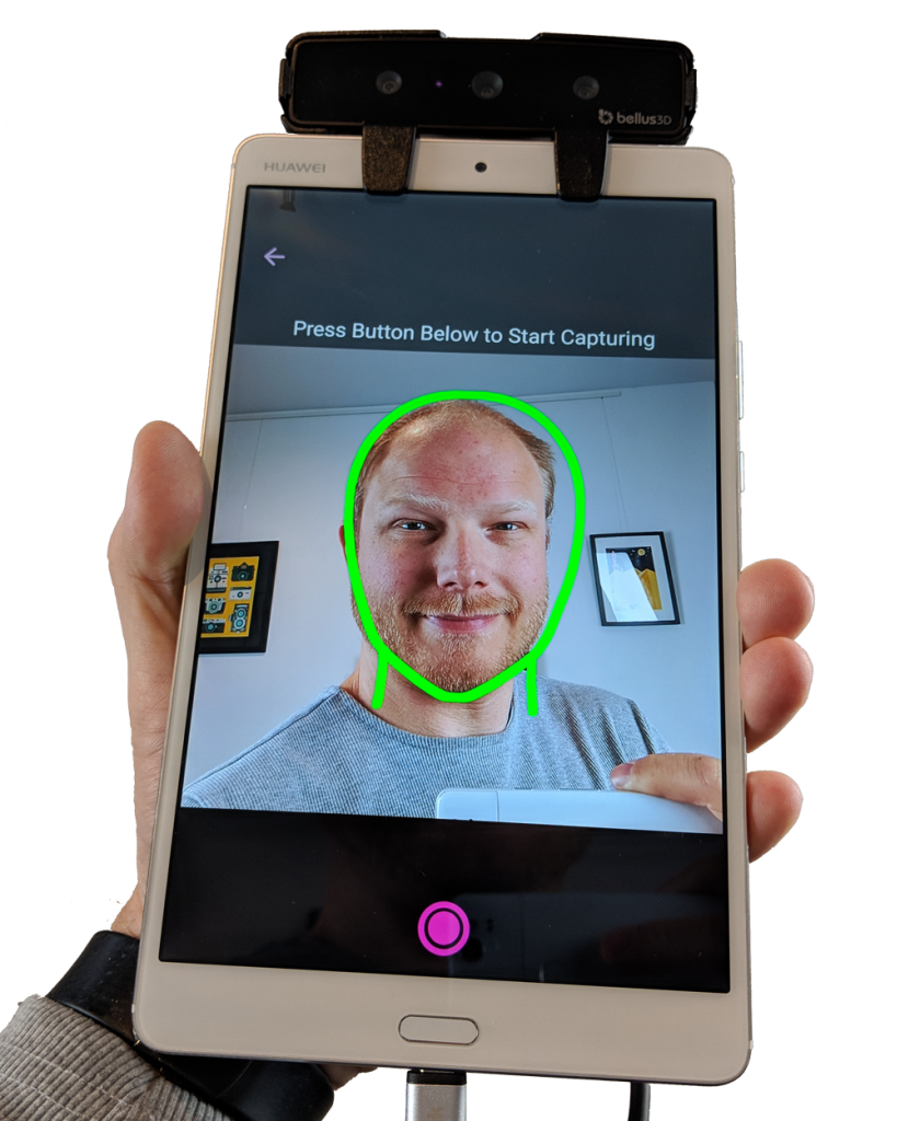 If you flip the sensor around and set the software to use the rear-facing camera, the subject needs to keep still and the device needs to be moved back and forth around the person’s head.