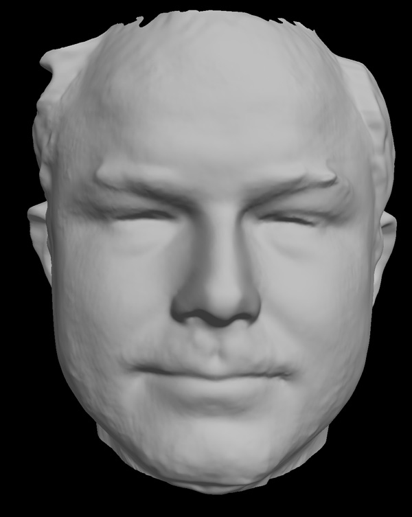 That’s even a bit too much texture detail for my comfort level. I’d almost ask for a blurring filter but of course this does show how well the Bellus3D device can capture a human head in both geometry and color. For comparison, below is a 3D selfie I made with the Matter and Form Bevel I reviewed a while ago which is designed for similar purposes.