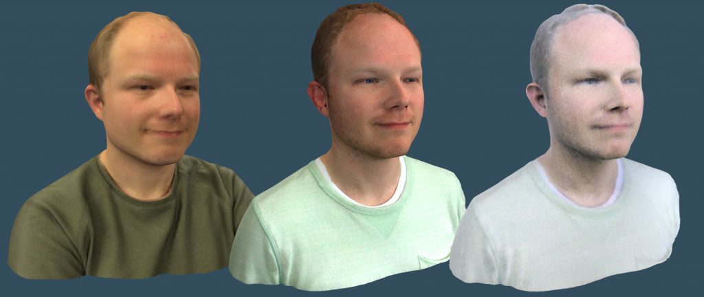 If you zoom in on the face of the bust it’s clear that the new texturing method offers a significant quality improvement. And because I know many of you want to make the comparison, here’s the result from itSeez3D (captured earlier but with the same light kit):