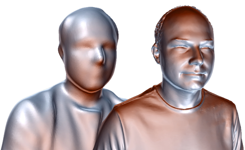 And in case you’re curious about the difference between a scan made with Artec Studio 11 in combination with the RealSense R200 and the Artec Eva, here are two scans of me: